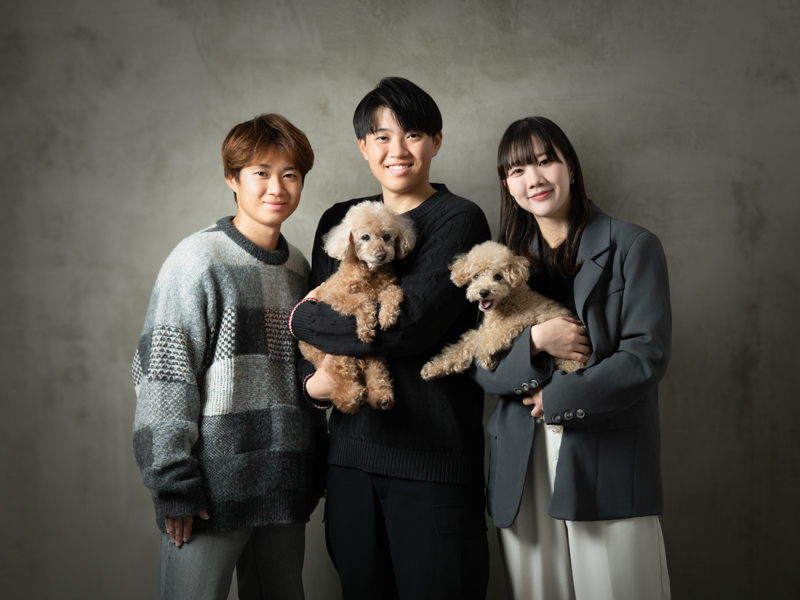 ワンちゃんニャンちゃんは大切な家族。家族の記念日にはぜひ一緒に。ペットと一緒の撮影、大歓迎です。わんちゃん達のおもちゃやおやつをお持ちください。動物大好きなスタッフがお待ちしています!