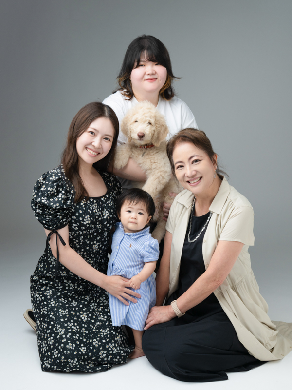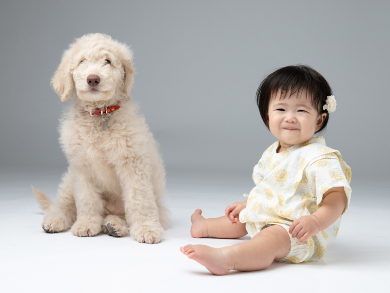 ワンちゃんニャンちゃんは大切な家族。家族の記念日にはぜひ一緒に。ペットと一緒の撮影、大歓迎です。わんちゃん達のおもちゃやおやつをお持ちください。動物大好きなスタッフがお待ちしています!